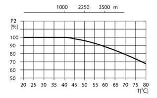 當機床冷卻泵在環境溫度大于40℃或海拔大于1000m時運行,由于空氣密度低冷卻效果差,電機輸出功率P2會有一定降低。泵在上述情況下運行電機功率需配大。